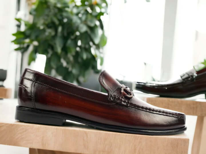 Handmade Cordovan Color Loafer Shoes, Men’s Horse bit Style Shoes. Genuine Leather Shoes