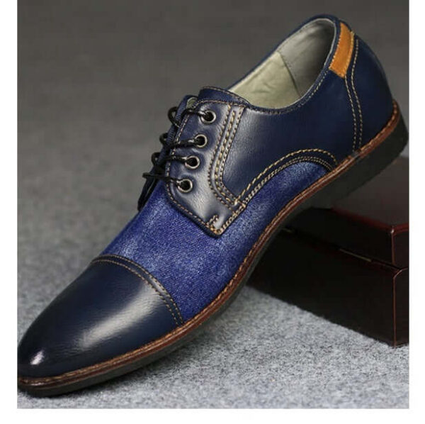 Men’s Handmade Blue & Black Cap Toe Leather & Tweed Shoes, Men Dress Lace Up Shoes