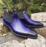 Handmade Men’s Half Ankle Chelsea Boot, Men’s Blue Black Tone Leather Chelsea Casual Boot.